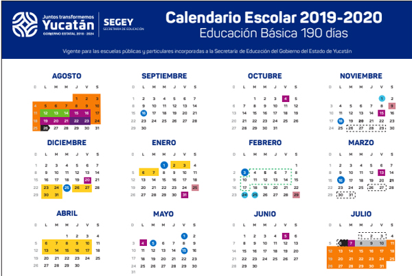 El inicio de las clases del ciclo escolar 2019-2020 en Yucatán coincidirá con el inicio de clases en todo el país, de acuerdo con el calendario de la SEP, de esta manera los sitios turísticos y los prestadores de servicios tendrán 6 fines de semana para recibir y atender a los paseantes, tanto yucatecos como nacionales, que visiten el estado.