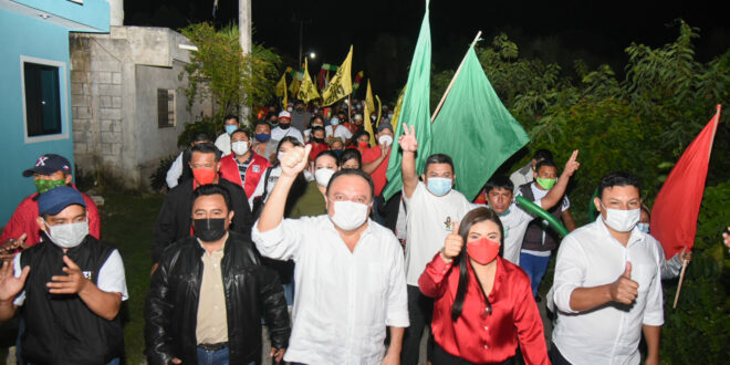 Mérida, Yucatán, a 08 de noviembre de 2021.- “Vamos a refrendar nuestro triunfo en Uayma, porque la gente está del lado de la legalidad y la democracia, y reconoce el trabajo y el liderazgo de nuestra candidata Yamili Cupul Vázquez”, afirmó el presidente del Comité Directivo Estatal del PRI en Yucatán, Ing. Francisco Torres Rivas, durante el cierre de campaña que se realizó anoche a un costado de la plaza principal del municipio.
