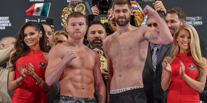 Canelo (50-1-2, 34 KO’s) dio un peso de 167.4 libras, mientras que Fielding (27-1, 15 KO’s) detuvo la romana en 167.6 libras.