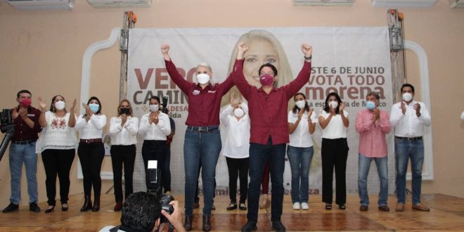Mérida, Yucatán, 21 de mayo del 2021.- Ante simpatizantes y militantes del Partido Movimiento Regeneración Nacional (Morena), la candidata a la alcaldía, Verónica Camino Farjat, realizó un llamado al voto por la transformación de Mérida.