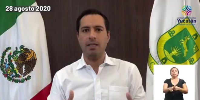 Mérida, Yucatán, 28 de agosto de 2020.- Tras la firma del Acuerdo para la Reapertura Económica Segura de Yucatán, cuyas disposiciones entrarán en vigor a partir de septiembre próximo, el Gobernador Mauricio Vila Dosal afirmó que, en esta nueva etapa, en la que se busca darle a todos los yucatecos la oportunidad de salir adelante, no podemos equivocarnos, por lo que llamó a no relajar las medidas para evitar poner en riesgo nuestra capacidad hospitalaria.