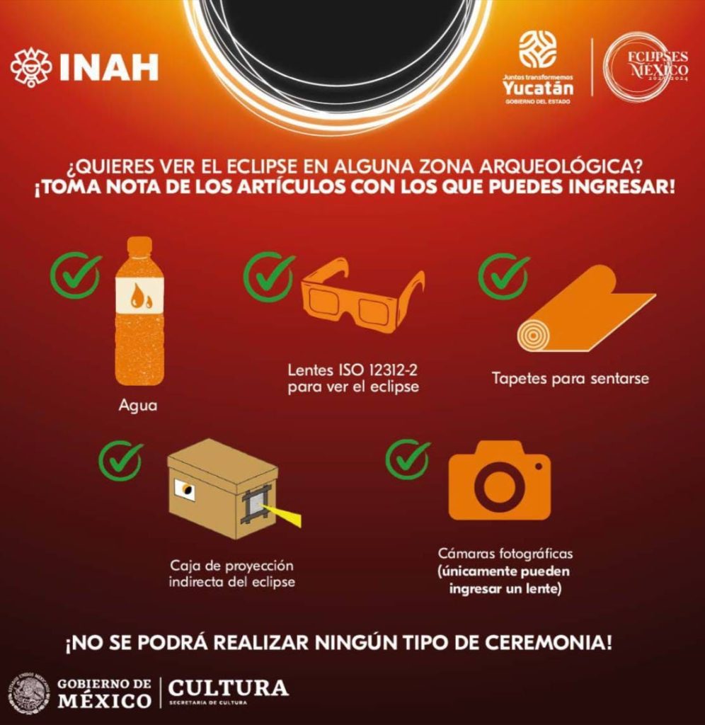 En rueda de prensa, el director de Prevención y Protección de la SSY, Carlos Isaac Hernández Fuentes, y la coordinadora operativa del Comité, Daniela Tarhuni Navarro, emitieron una serie de sugerencias para disfrutar de este fenómeno astronómico que iniciará a las 9:45 a. m., alcanzará su punto máximo de observación a las 11:25 a. m. de la mañana y concluirá 9 minutos después de la 1 de la tarde.