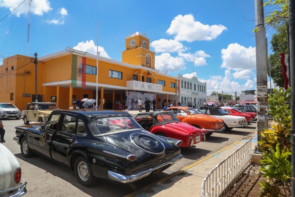 KANASÍN, Yucatán a 22 de septiembre 2024.- El alcalde Edwin Bojórquez Ramírez atestiguó ayer sábado la llegada a Kanasín del “Unique Rally Clásico”, exhibición de autos clásicos de los años 50’s y 60’s.