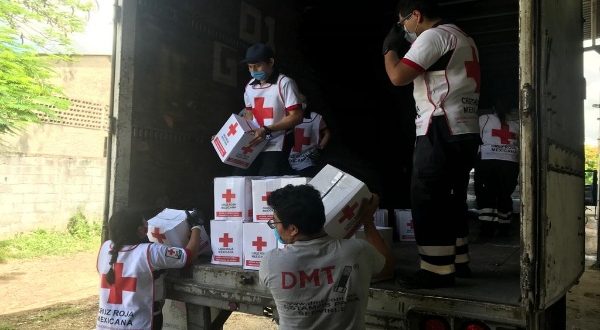 Mérida, Yucatán 15 de junio de 2020.- Dos mil 500 paquetes de ayuda humanitaria que envío la Cruz Roja Mexicana llegaron esta mañana para apoyar a las familias afectadas por las inundaciones ocasionadas por la tormenta tropical Cristóbal.