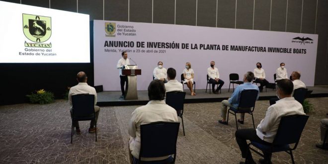 Mérida, Yucatán, 23 de abril de 2021.- La empresa estadounidense Invincible Boats establecerá en Yucatán una planta de manufactura dedicada a la construcción de barcos de recreo, lanchas de pesca y catamaranes, proyecto que anunció el Gobernador Mauricio Vila Dosal y que significará la inversión de casi mil millones de pesos (50 millones de dólares), así como la generación de 400 nuevos empleos para los yucatecos.