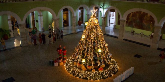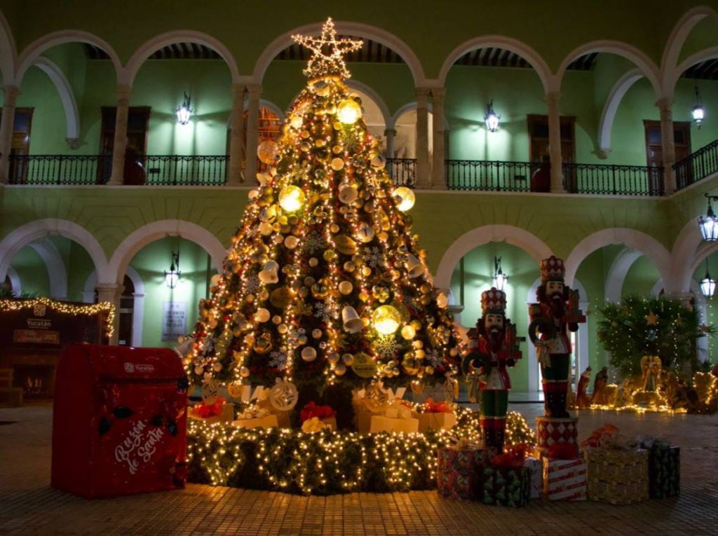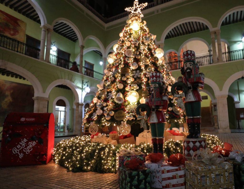 El público que acuda a partir de hoy a la sede del Poder Ejecutivo yucateco podrá admirar el tradicional árbol de Navidad junto con otras decoraciones, como los renos, campanas y luces multicolores, además del buzón de Santa. Los visitantes también podrán tomarse fotografías en el set elaborado para la ocasión.