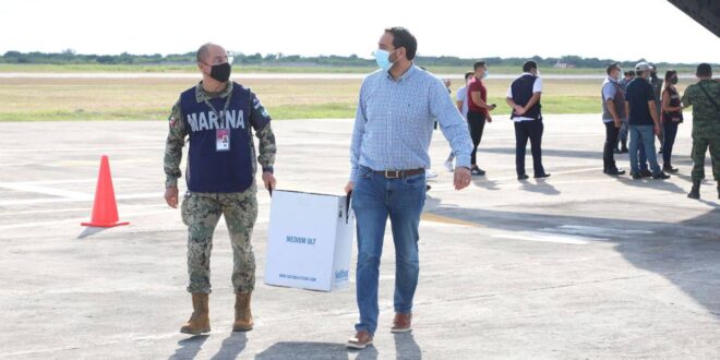 Por instrucción del Gobernador Mauricio Vila Dosal, el titular de la SSY, Mauricio Sauri Vivas, acudió a la Base Aérea Militar (BAM) número 8 para supervisar el arribo de este nuevo lote, a bordo de una aeronave C-27J Spartan de la Fuerza Aérea Mexicana matrícula 3403, proveniente de la Ciudad de México, que tocó territorio estatal a las 14:50 horas.