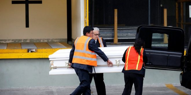 Staff of a funeral home carry the coffin containing the body of Jakelin Caal before her funeral, at La Aurora International Airport in Guatemala City, Guatemala December 23, 2018. Jakelin, who together with her father handed themselves in to U.S. border agents earlier this month, died after developing a high fever while in the custody of U.S. Customs and Border Protection.REUTERS/Luis Echeverria