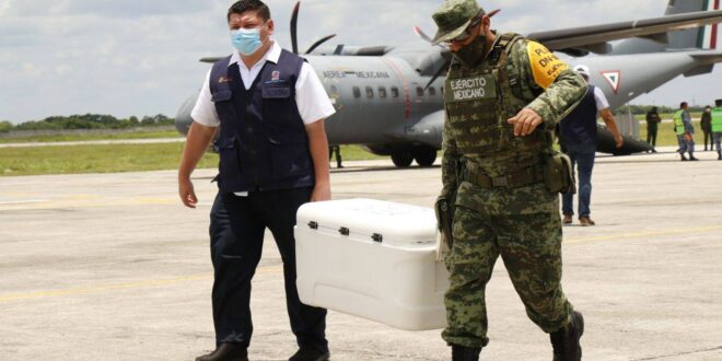 Mérida, Yucatán, 26 de junio de 2021.- Un nuevo cargamento con 109,600 dosis contra el Coronavirus arribó a Yucatán este día, las cuales estarán destinadas para iniciar con la aplicación de primeras dosis a las personas entre 30 y 39 años de Mérida.