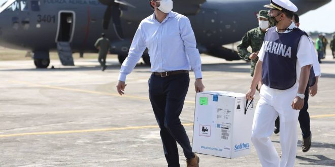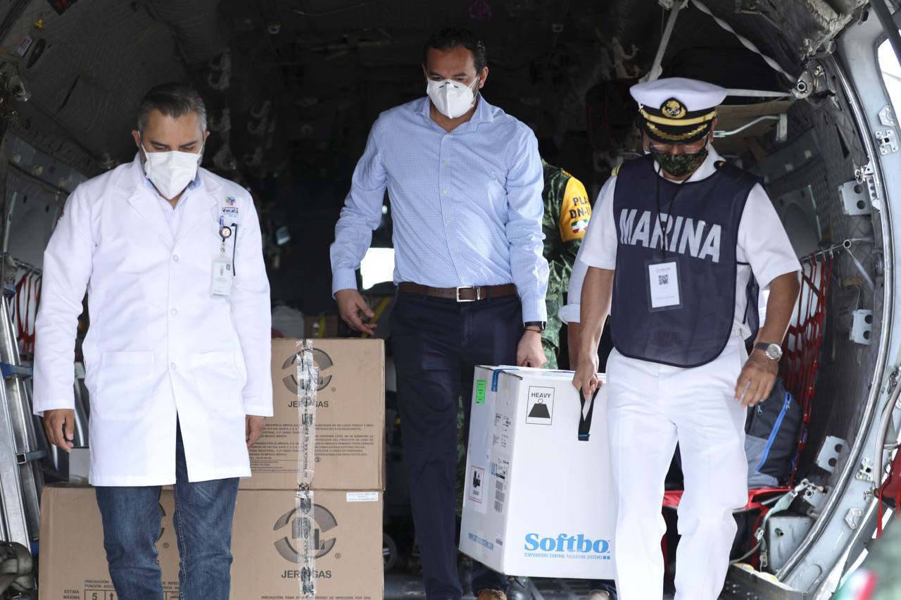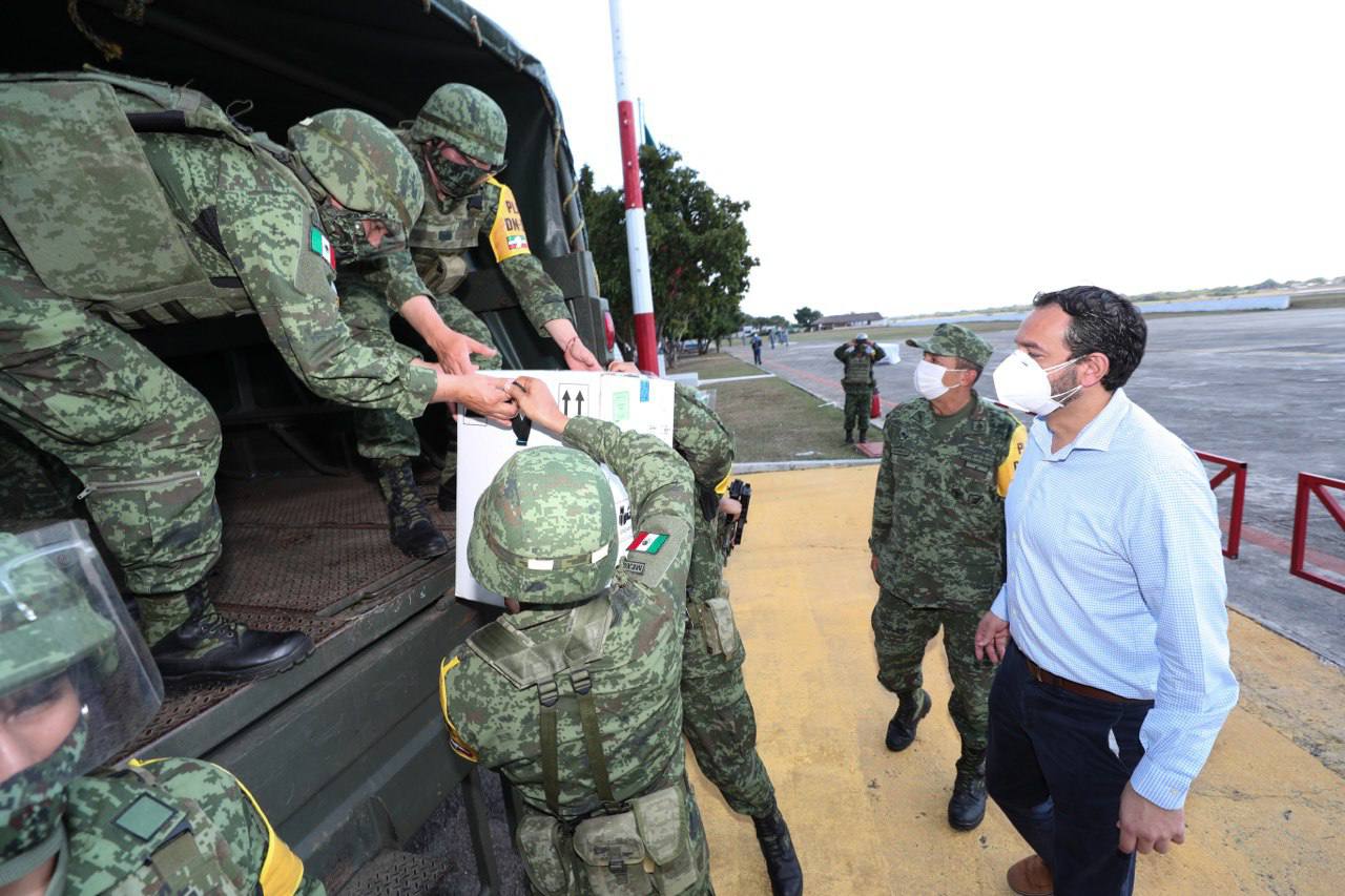 En la Base Aérea Militar Número 8, Sauri Vivas constató la llegada, a las 12:08 horas de este día, del nuevo cargamento a bordo de una aeronave Spartan C-27J matrícula 3401 de las Fuerzas Armadas proveniente de la Ciudad de México, con lo que Yucatán seguirá avanzando en la primera etapa de la estrategia de vacunación, donde se contempla la aplicación a todo el personal del sector salud de primera y segunda línea de atención.