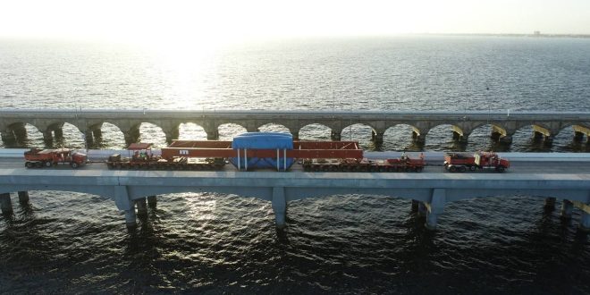 Debido a las dimensiones masivas de estos elementos tecnológicos, que entre ambos suman un peso cercano a las 400 toneladas, se recurrió a un convoy compuesto por varios camiones para transportarlos de forma segura hasta su destino.