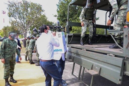 Mérida, Yucatán, 24 de febrero de 2021.- A bordo de una aeronave de las Fuerzas Armadas, arribaron a Yucatán este miércoles un total de 10,725 vacunas contra el Coronavirus que se distribuirán de la siguiente manera: