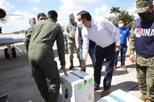 Por instrucciones del Gobernador Mauricio Vila Dosal, el titular de la Secretaría de Salud de Yucatán (SSY), Mauricio Sauri Vivas, supervisó este día la llegada del nuevo embarque con vacunas de la farmacéutica Pfizer en la Base Aérea Militar Número 8.