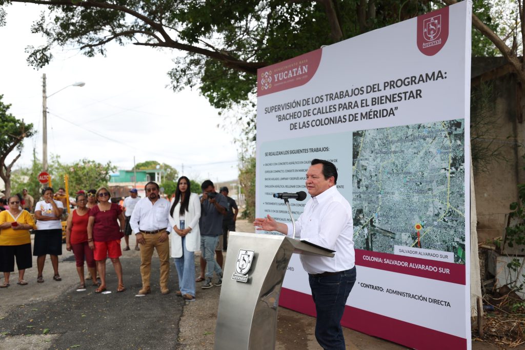 El Gobernador de Yucatán, Joaquín Díaz Mena, informó que, mediante el Plan Bienestar, se realizan trabajos de bacheo en de calles en la colonia Salvador Alvarado Sur de Mérida, intervención que beneficiará directamente a más de 4,600 habitantes y se ejecutará con recursos 100% estatales.