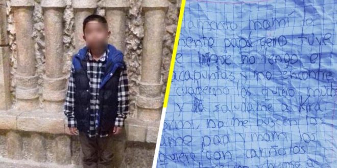La madre del niño, Karla “N”, informó que su hijo le dejó una nota con uno de sus compañeros, en la que explicó porque huía de su hogar.