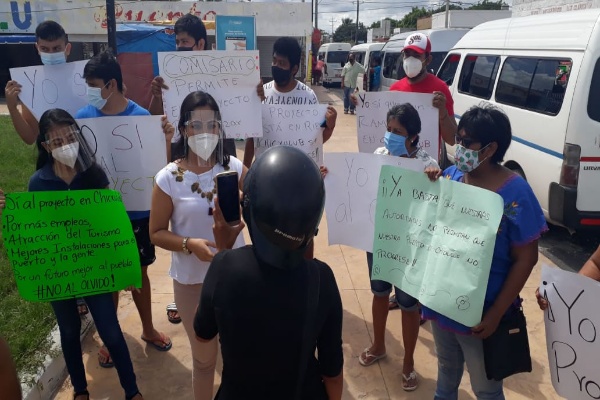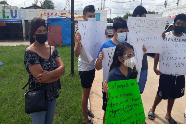 Progreso, Yucatán 1 de Octubre 2020.-Vecinos y locatarios realizaron una manifestación esta mañana para apoyar las obras de mejoramiento del parque y construcción del mercado de Chicxulub Puerto.