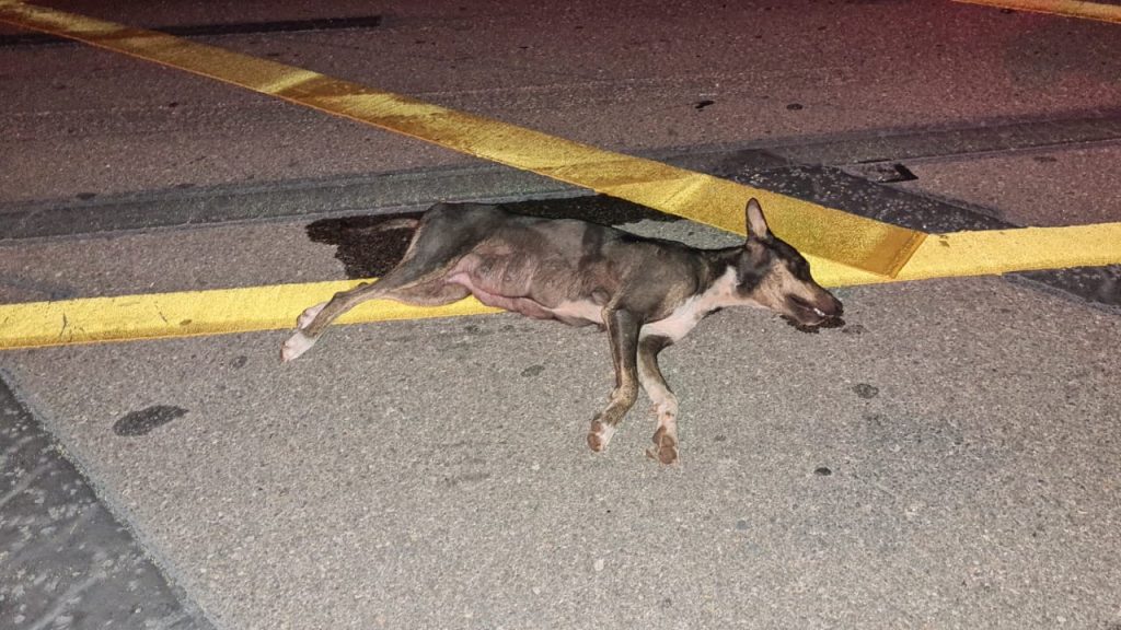 Provocando así que pierda el control de su vehículo ligero y acabar arrastrando varios metros en medio del asfalto. El peludo quedó tendido en la carretera y listo para el almuerzo de los zopis.