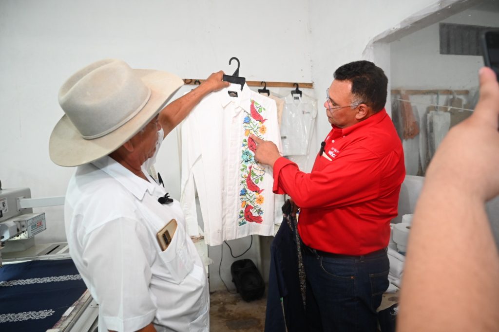 Durante su visita a la fabrica de guayaberas D’Suárez de Tekit, municipio donde se concentra la mayor producción de guayaberas con envíos a nível nacional e internacional, observó la creciente infraestructura textil.