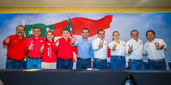 En rueda de prensa, las y los candidatos a legisladores federales de esta coalición en Yucatán, acompañados de los presidentes estatales, Asis Cano Cetina del PAN y Gaspar Quintal Parra del PRI, orientadas a fortalecer las instituciones, así como la seguridad y el sistema de salud.