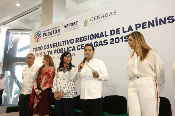 Mérida, Yucatán, 29 de marzo de 2019.- Con la participación de funcionarios y miembros del sector empresarial de los estados de Yucatán, Campeche y Quintana Roo, el Gobernador Mauricio Vila Dosal y la secretaria de Energía, Rocío Nahle García, inauguraron el Foro Consultivo Regional de la Península, organizado por el Centro Nacional de Control de Gas Natural (Cenegas), con el fin de escuchar de primera mano las necesidades de la región en materia energética.