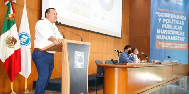 Ante Fernando Dworak Camargo, analista y consultor político y de los alcaldes reelectos María Teresa Jiménez Esquivel, de Aguascalientes y Jesús Nader Nasrallah, de Tampico, Renán Barrera participó en la mesa panel “Casos de éxito en el gobierno municipal para la reelección”, realizada en el Auditorio Manuel Gómez Morín, del Comité Ejecutivo Nacional del PAN, en la Ciudad de México.