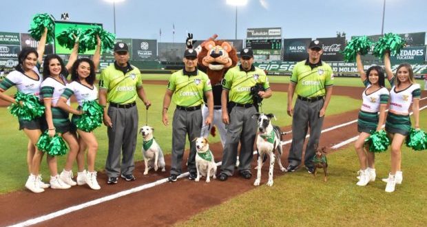 Los umpires saltaron al terreno acompañados de perros adiestrados, y la primera pelota del juego fue lanzada simbólicamente por la cachorra Gaia, quien durante toda la noche deleitó a los fanáticos con sus increíbles trucos y habilidades.