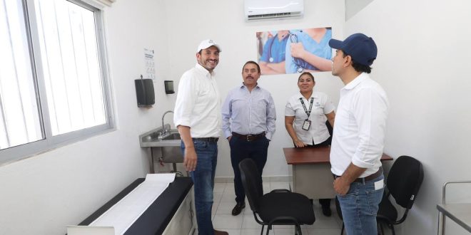 En compañía del alcalde de Progreso, Roger Gómez Ortegón, y del titular de la Secretaría de Salud de Yucatán (SSY), Mauricio Sauri Vivas, el Gobernador recorrió las renovadas instalaciones de este lugar que es parte de los 140 Centros de Salud de la entidad que ya cuentan con exámenes de laboratorio gratuitos, ultrasonidos, atención dental y psicológica, así como una mochila roja para estabilizar a pacientes que sufren un infarto en lo que llega la ambulancia para su traslado, así como un tanque de oxígeno.
