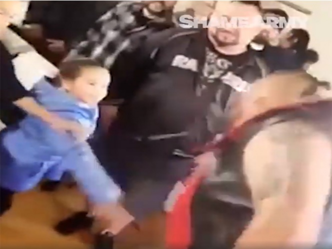 Inmediatamente el padre enfurecido de la pequeña decidió atacar por la espalda al luchador y agarrarlo a golpes.