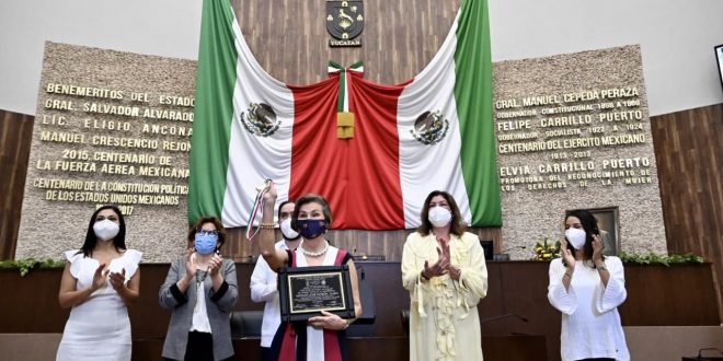 La presidenta de la comisión de Postulación de la Medalla, Mirthea Arjona Martín (PRI), manifestó que es un honor entregar dicha presea a un hombre que dedicó toda su vida a trabajar a favor de la cultura, en especial, a su apoyo para promover, patrocinar e impulsar la OSY.