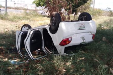 En el sitio se encuentra un automóvil Renault tipo Mirage, con placas YYF-048-A, con las ruedas para arriba.