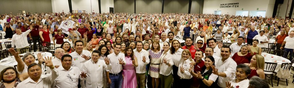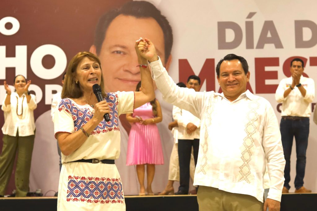 Huacho encabezó un multitudinario encuentro con más de 2,500 maestras y maestros en el Centro de Convenciones Siglo XXI, acompañado de Tatiana Clouthier, representante de la próxima presidenta de México, Claudia Sheinbaum. En esta reunión se comprometió a trabajar a favor del magisterio y del mejoramiento de la educación en Yucatán.