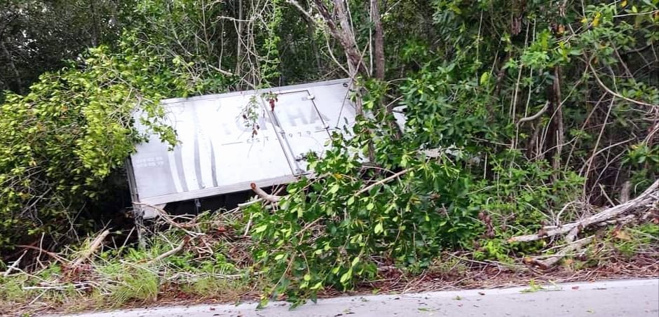 Celestún, Yuc., a 20 de julio.- No hay fecha que no ocurran siniestros viales en el tramo ‘salado’ de la Mérida-Celestún, tramo Kinchil-Celestún, pues esta jueves un camión de la empresa hielera Tun Ha, tuvo una desastrosa salida.