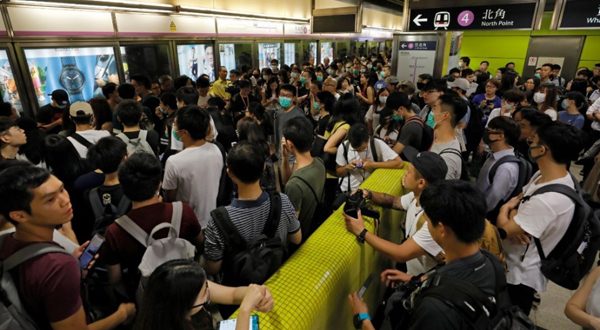 Los manifestantes irrumpieron en varias estaciones de metro de Hong Kong en respuesta a las llamadas a través de las redes sociales. A la hora pico, los jóvenes obstruyeron las puertas de los trenes, forzando demoras y la suspensión del servicio, reportó el portal Global Times.