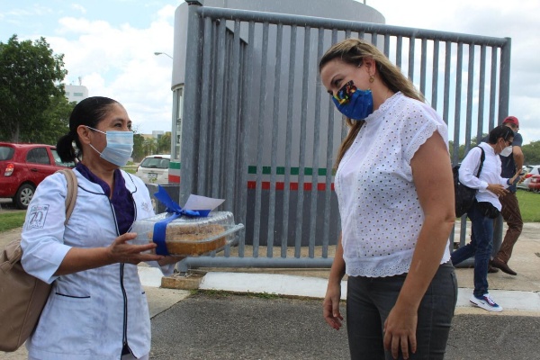 En cada uno, colocó una manta con globos en las puertas de acceso del personal médico donde se lee “La gente luchadora y valiente es la que inspira y da sentido a la vida. Mucho ánimo valientes”, en cada uno de los lugares visitados, entregó panes, pasteles y hojaldras para hacerles llegar de manera personal un mensaje de agradecimiento por sus logros diarios en el salvamento de hermanos yucatecos y reconocimiento a su profesionalismo poniendo en riesgo incluso, sus propias vidas, tal y como sucedió este mismo viernes con un joven médico residente del hospital Juárez del IMSS que falleció salvando vidas.