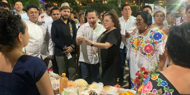 En representación de la SEFOTUR, Nelda Zapata acompañó a la alcaldesa Guadalupe Zapata a recorrer el tianguis para admirar el trabajo de los artesanos, quienes hacen de cada diseño, bordado, en madera o tejido, una invitación a los visitantes para llevar como recuerdo una parte de Yucatán.