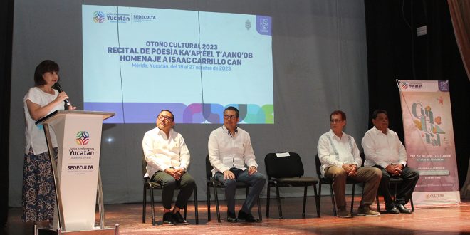 Mérida, Yucatán, 18 de octubre de 2023.- La obra del extinto poeta, narrador, dramaturgo y artista visual, Isaac Carrillo Can, es homenajeada en el encuentro titulado Recital de Poesía Ka’ap’éel T’aano’ob, que desde hoy y hasta el 27 de octubre ofrecerá 25 actividades en el marco del Otoño Cultural, con más de 30 autores de Ciudad de México, Oaxaca, Nayarit, Quintana Roo y Yucatán.