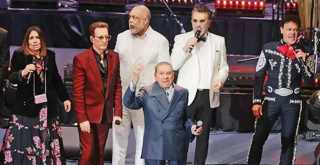 Después de un largo programa musical sin su presencia sobre el escenario, el cantante arribó minutos antes del final, casi al borde de la medianoche del miércoles 4 de junio, para escuchar a todos los intérpretes, compositores y amigos suyos, unidos como una sola voz, en el tema Por amor, mismo que fue uno de los grandes éxitos de