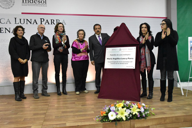 Al homenaje asistieron familiares de Luna Parra: su esposo, Luis Linares Zapata y sus hijas María Angélica, Constanza y Viviana; la subsecretaria de Hacienda y Crédito Público, Vanessa Rubio, y el Jefe de la Oficina del Secretario de Desarrollo Social, Antonio Astiazarán.