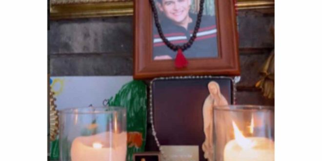 En laimage se observa también la urna de Julián Figueroa, de color azul y acompañada por un retrato del hijo de Maribel Guardia y Joan Sebastián, además de una imagen de la Virgen de Guadalupe y dos veladoras, además de dos rosarios.