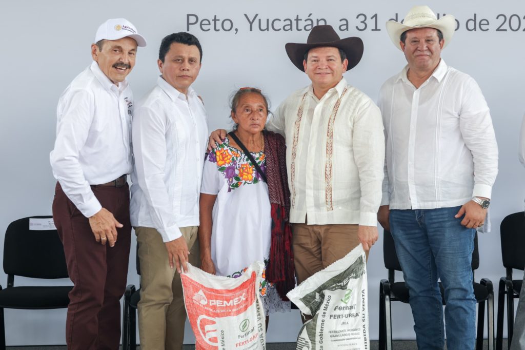 En ese mismo marco, acompañado por el titular de la Oficina de Representación en Yucatán de la Secretaría de Agricultura y Desarrollo Rural (Sader), Jorge Carlos Berlín Montero, el Gobernador encabezó la entrega de insumos del programa federal Fertilizantes para el Bienestar, con el cual se beneficiará a casi 27 mil productoras y productores de maíz en todo el estado. El programa contempla la entrega de 14,347 toneladas de fertilizante, que serán aplicadas en 47,800 hectáreas.