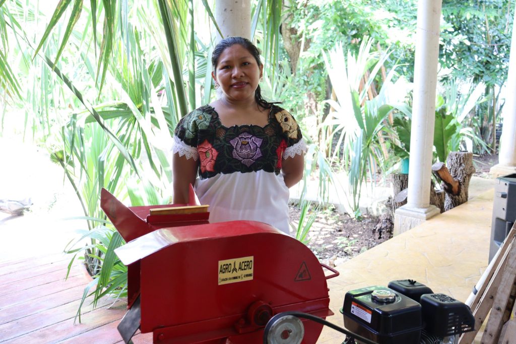 Una nueva picadora permitirá producir composta en el vivero comunitario Chúumuk Lu’um de María Maricela Nahuat Tun, en Valladolid, que donará más de 10 mil plantas, entre ellas ramón, caoba y ciricote, en apoyo a la estrategia Renacimiento Verde.