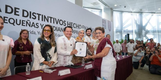 Mérida, Yucatán, a 30 de septiembre de 2025.- Más de 100 micro, pequeñas y medianas empresas de diversos sectores recibieron el distintivo Hecho en México, reconocimiento que certifica la calidad y autenticidad de sus productos y les permite acceder a mayores oportunidades de comercialización y exportación.