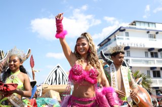 El derrotero avanzó por el Malecón Tradicional con coloridos carros alegóricos y comparsas que llenaron el ambiente de música, ritmo y entusiasmo. También destacaron las participaciones del actor José Ron y la modelo Kimberly Flores, quienes saludaron al público desde sus respectivos carros alegóricos, generando gran emoción entre las familias y visitantes que se dieron cita a lo largo del recorrido.