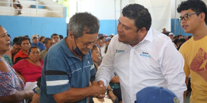 Eulogio Pech Pech, ex beisbolista y vecino de la comisaría de San Antonio Tehuitz, acudió en busca de su apoyo acompañado de sus hijos e indicó que Edwin Bojórquez es un gobernante que ayuda a la gente más necesitada y que piensa con el corazón.