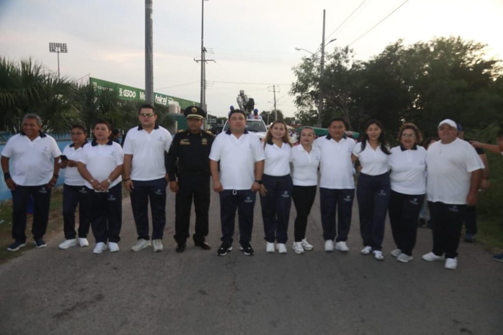 Por primera vez se contó con la participación de los trabajadores del Ayuntamiento de Kanasín, además de que también estuvo el contingente de la Secretaria de la Mujer, que hizo una demostración de aerobics.