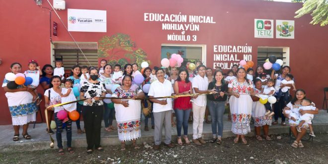Tetiz, Yucatán, a 28 de octubre de 2022.- Con el propósito de acompañar a más de 40 familias de Nohuayún, Yucatán en la crianza de las niñas y niños hasta los dos años con 11 meses de edad, y a sus madres desde el embarazo, se inauguró el primer espacio para el servicio de Educación Inicial No Escolarizado en esta localidad.