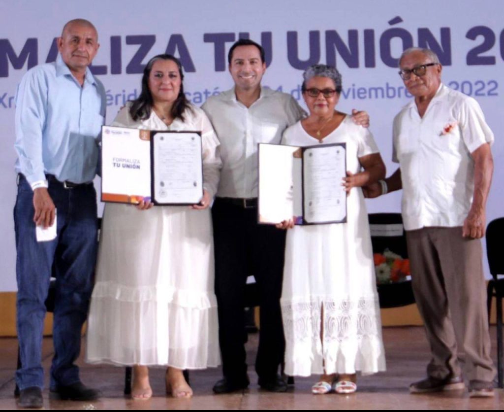 En el marco de la edición 46 de la Feria Yucatán Xmatkuil 2022, Vila Dosal encabezó esta ceremonia, donde más de 500 parejas provenientes de 81 municipios de todo el estado decidieron dar certeza jurídica a su relación contrayendo matrimonio gracias a este esquema, que permite que los contrayentes realicen el trámite de manera gratuita y puedan regularizar su situación.