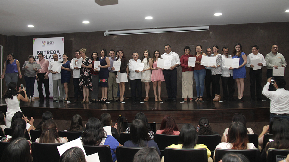 Lo anterior sucedió durante la entrega de documentos a 72 profesores que participaron en los Concursos de Oposición de Ingreso al Servicio Profesional Docente y para la Promoción con funciones de Supervisor, ciclo escolar 2017-2018, encabezada por el titular de la Secretaría de Educación del Gobierno del Estado (Segey), Víctor Caballero Durán.