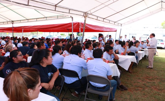 En su saludo a los trabajadores, Dulce María Sauri destacó que Air Temp es una empresa de innovación y tecnología de punta que exporta a Estados Unidos y Europa, y lo hace gracias a la visión de un empresario y a la calidad de la mano de obra yucateca.