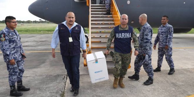Por instrucciones del Gobernador Mauricio Vila Dosal, el responsable Estatal de Vacunación Universal de la SSY, Alejandro Díaz Sánchez, acudió a la Base Aérea Militar (BAM) Número 8 para supervisar la llegada de estos lotes, que tocaron territorio estatal a las 16:11 horas, a bordo de una aeronave Boeing 737 de la Fuerza Aérea Mexicana, matrícula 3526, proveniente de la Ciudad de México.